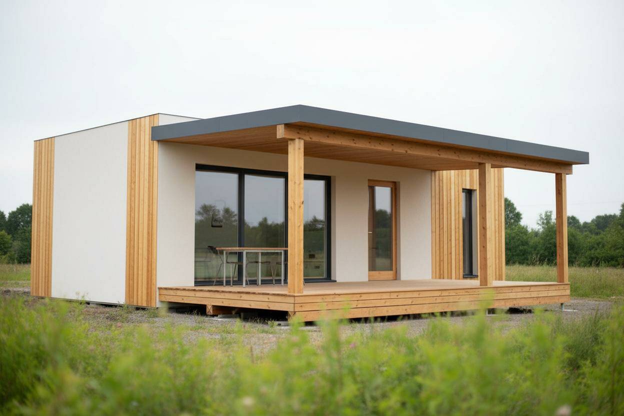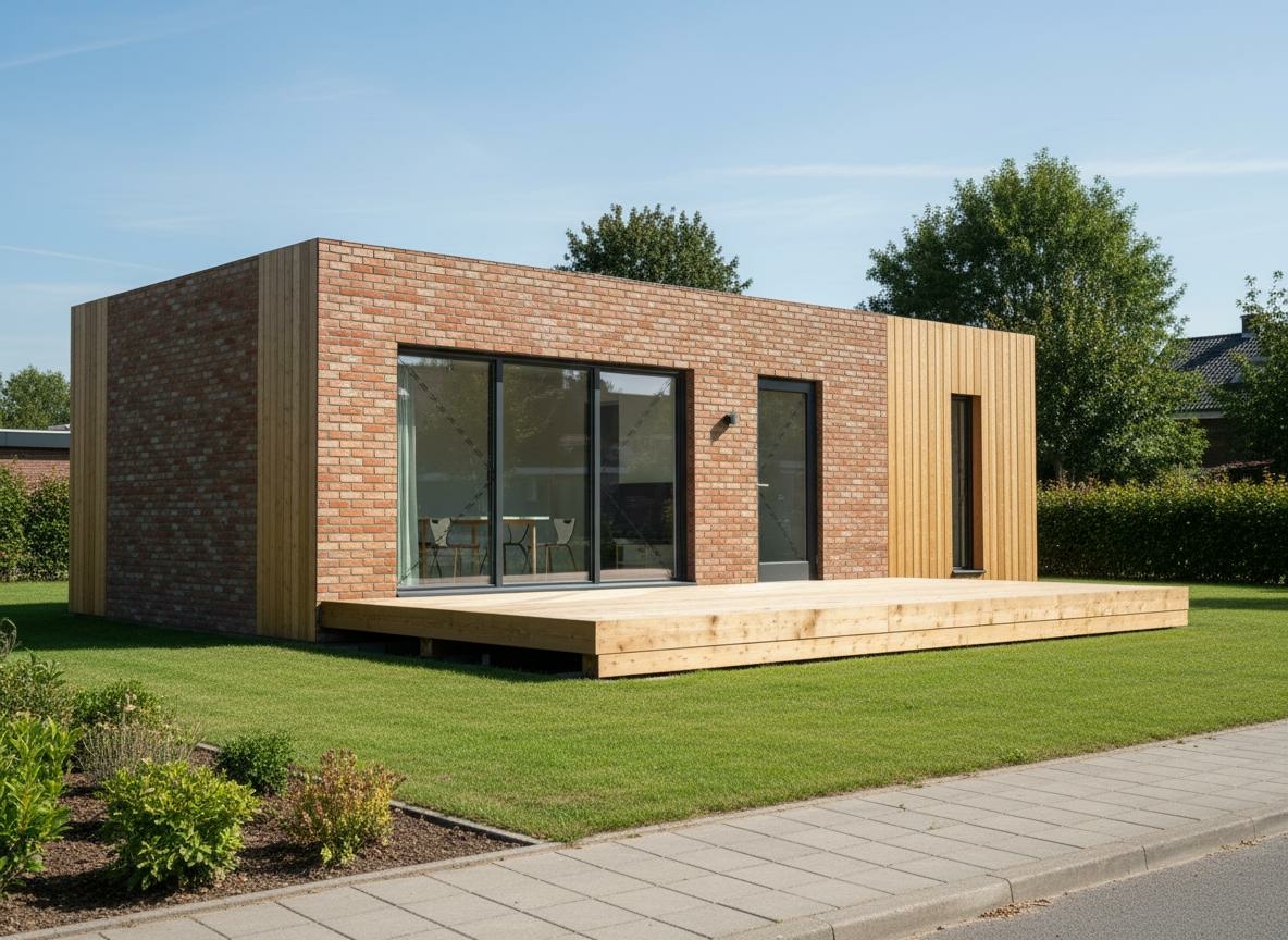 b) Front side half wood, second white silicon facade (facade where the terrace)