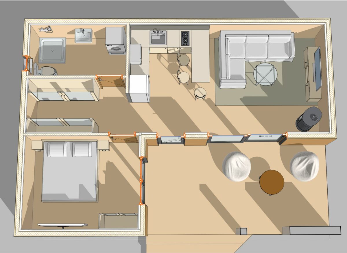 Kompaktný domček s otvorenou dispozíciou a prémiovým vzhľadom, ideálny na celoročné bývanie aj rekreáciu. Interiér ponúka inteligentné rozdelenie na dennú a nočnú zónu pre maximálne pohodlie.