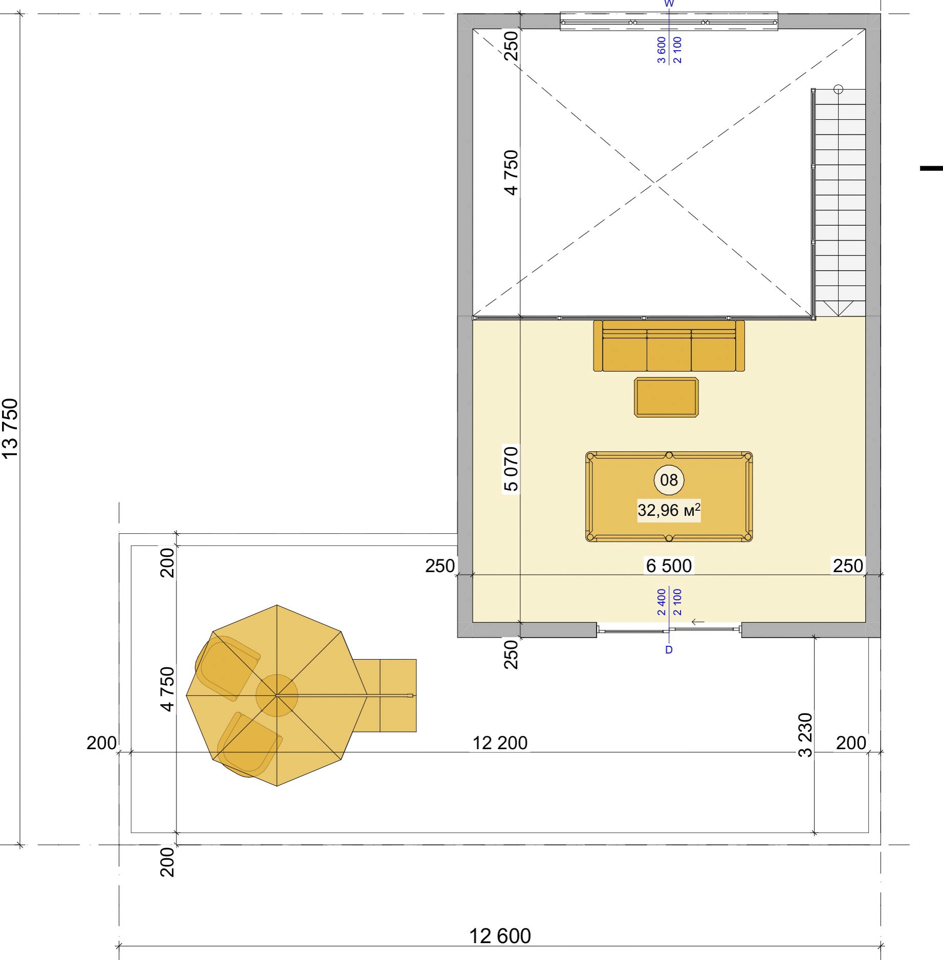 2. Terasa drevená (podlaha vo výške 575 mm)